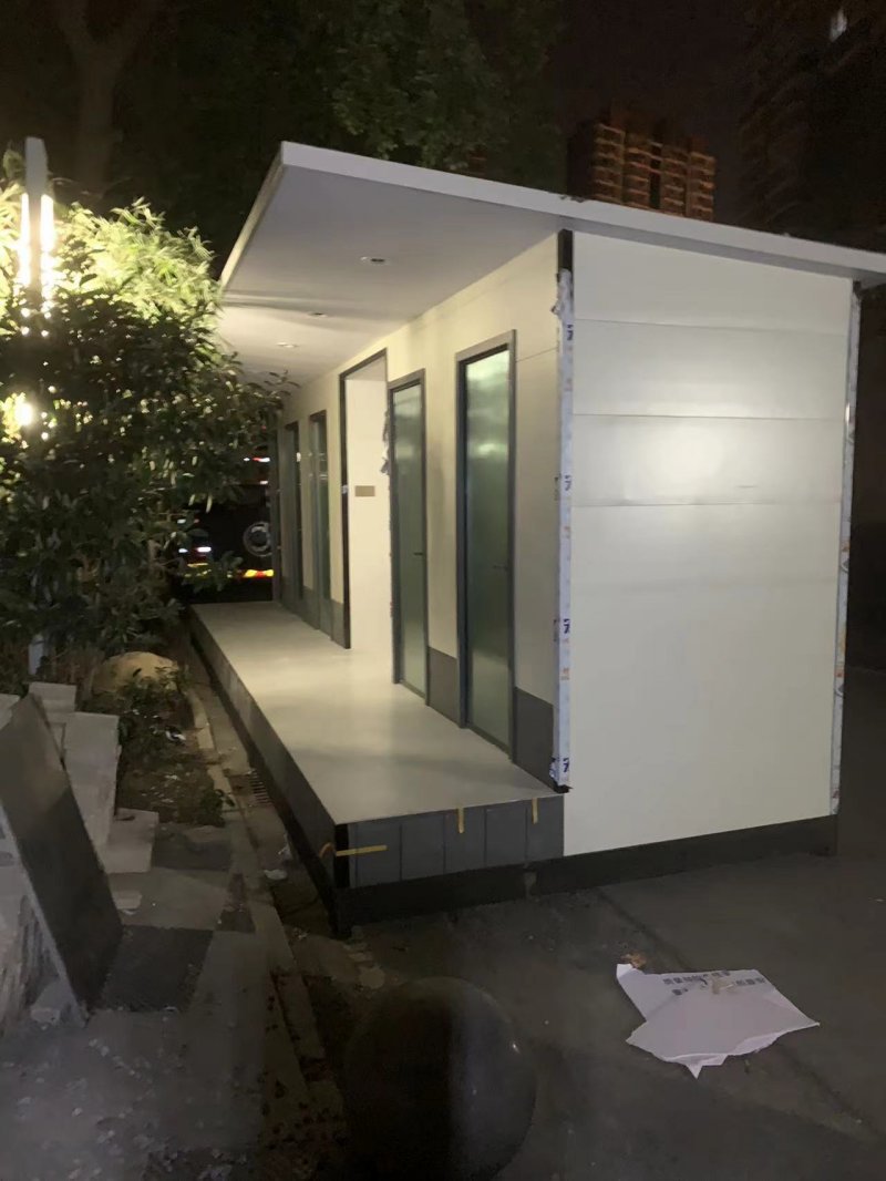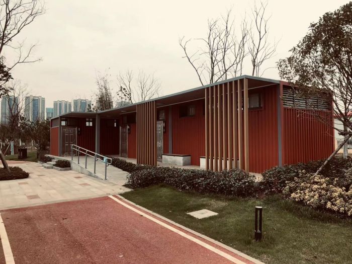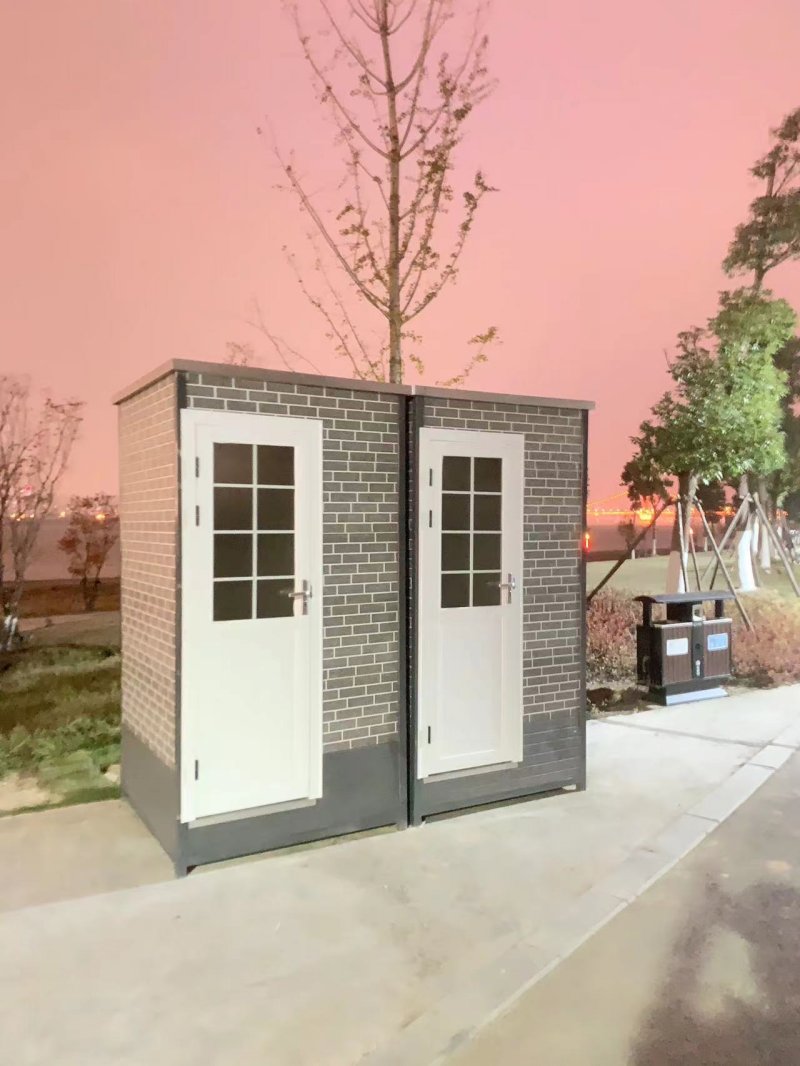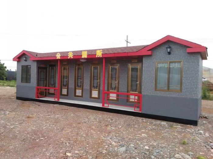 拼裝廁所;在廠里做好各個(gè)廁所部件,再到現(xiàn)場組裝在一齊,適合不易運(yùn)輸?shù)拇笮蛶_@座箱式廁所,女廁5個(gè)蹲位內(nèi)配工具間,男廁2個(gè)蹲位+2小便斗,第三衛(wèi)生間由殘疾馬桶、助力洗手盆和兒童馬桶、兒童洗手盆外加?jì)雰号_等設(shè)施。廁所前后有窗,通風(fēng)采光,前部走廊裝有屋檐,防雨防曬。此廁所位于公路綠道邊,整體大氣,功能齊全,造型美觀,是一道難得的靚麗景觀!